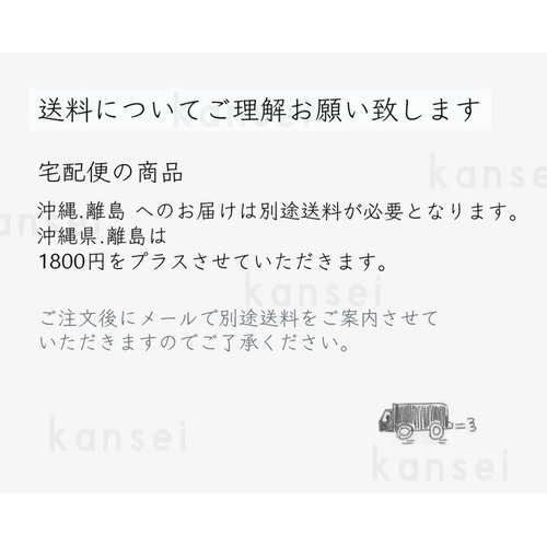 沖縄県.離島は1800円をプラスさせていただきます。 ご注文後にメールで別途送料をご案内させて